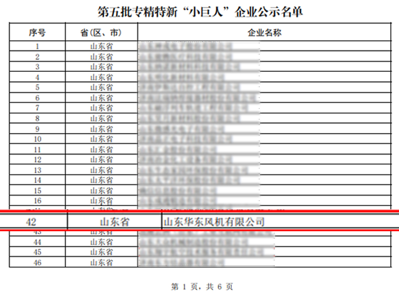 喜報(bào)丨華東風(fēng)機(jī)榮獲國(guó)家級(jí)專(zhuān)精特新“小巨人”企業(yè)